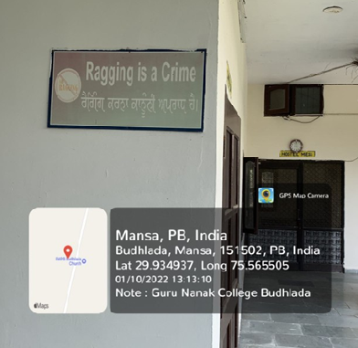- Notices and warnings regarding ragging are put up at various places in the campus.