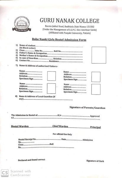 The hostel affairs are co-ordinated under the guidance and supervision of the resident Warden.The hostel committee under the chairmanship of the Principal, Guru Nanak College Budhlada.