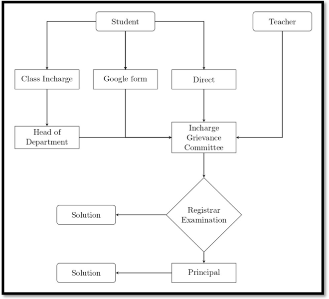 The college has an effective mechanism for redressal of grievances regarding internal examination which is shown through the following flow chart:
